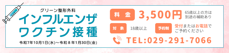 グリーン整形外科では10月1日よりインフルエンザワクチン接種を開始いたします。