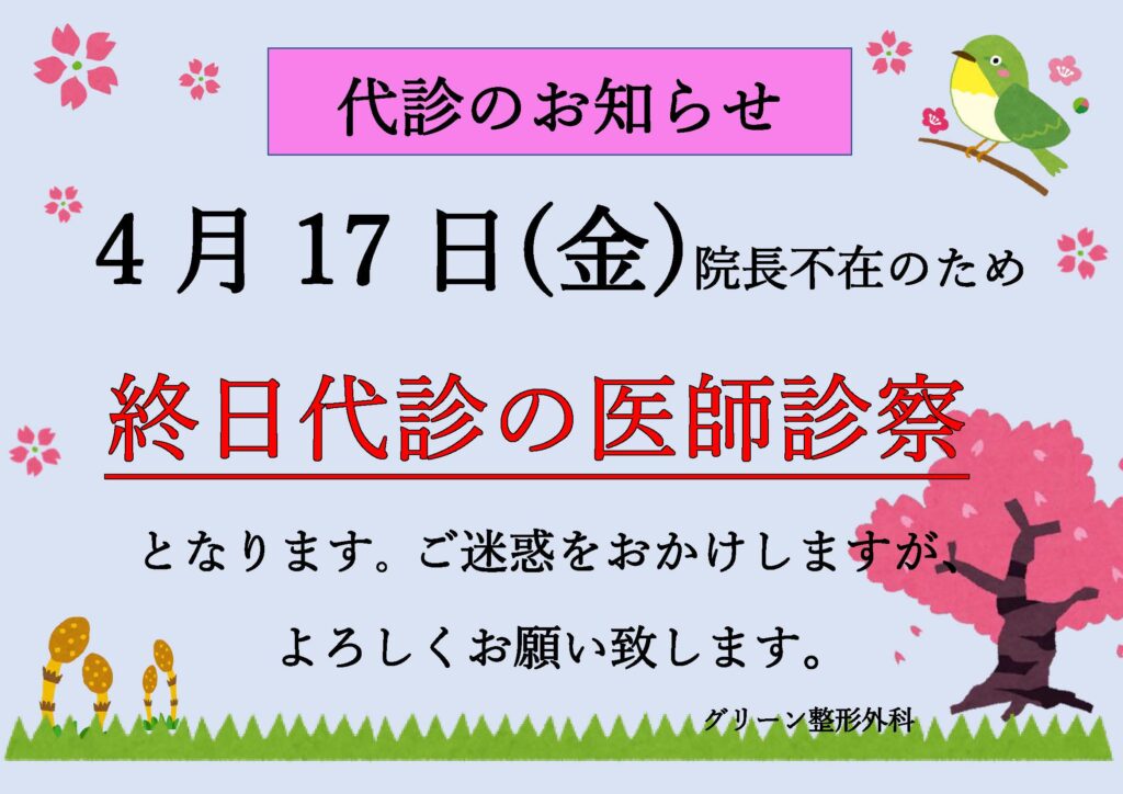 グリーン整形外科のホームページを新しく開設しました。